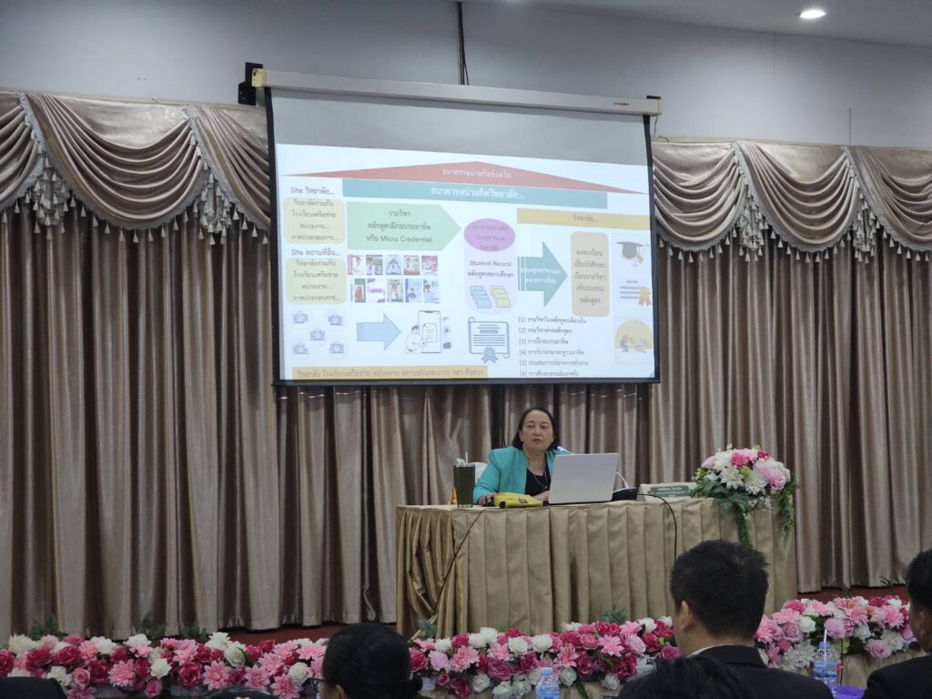 วันที่ 22 สิงหาคม 2568 นางศรัญญา สุขปลั่ง ผู้อำนวยการวิทยาลัยการอาชีพนครนายก พร้อมด้วย นางสาวปานรดามุ่งยุทธกลาง รองผู้อำนวยการฝ่ายวิชาการ และนางสาวกมลรักษ์ ศรีเมือง หัวหน้างานพัฒนาหลักสูตรการเรียนการสอน วิทยาลัยการอาชีพนครนายกเข้าร่วมพิธีเปิดงานการประชุมเชิงปฏิบัติการเพื่อกำหนดแนวทางและรูปแบบการขับเคลื่อนระบบธนาคารหน่วยกิต (CREDIT BANK) ระดับประกาศนียบัตรวิชาชีพ(ปวช.) ระดับประกาศนียบัตรวิชาชีพชั้นสูง(ปวส.) และระดับ ปริญญาตรี(ทล.บ.) ณ ห้องประชุมราชพฤกษ์ วิทยาลัยเทคนิคบูรพาปราจีน