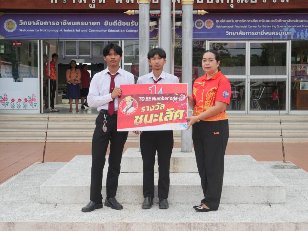 วันที่ 27 สิงหาคม 2568 นางศรัญญา สุขปลั่ง ผู้อำนวยการวิทยาลัยการอาชีพนครนายก พร้อมด้วย ผู้บริหาร คณะครู และนักเรียน นักศึกษา วิทยาลัยการอาชีพนครนายก ร่วมมอบรางวัลให้กับนักเรียน นักศึกษา ในการเข้าร่วมการแข่งขันทักษะพื้นฐาน การแข่งขันกีฬา Esports โดยแผนกวิชาสามัญสัมพันธ์ ร่วมกับชมรมทูบีนัมเบอร์วัน ในการดำเนินการแข่งขันในครั้งนี้ ณ หน้าเสาธง วิทยาลัยการอาชีพนครนายก