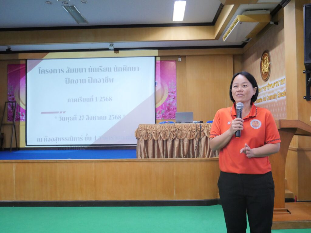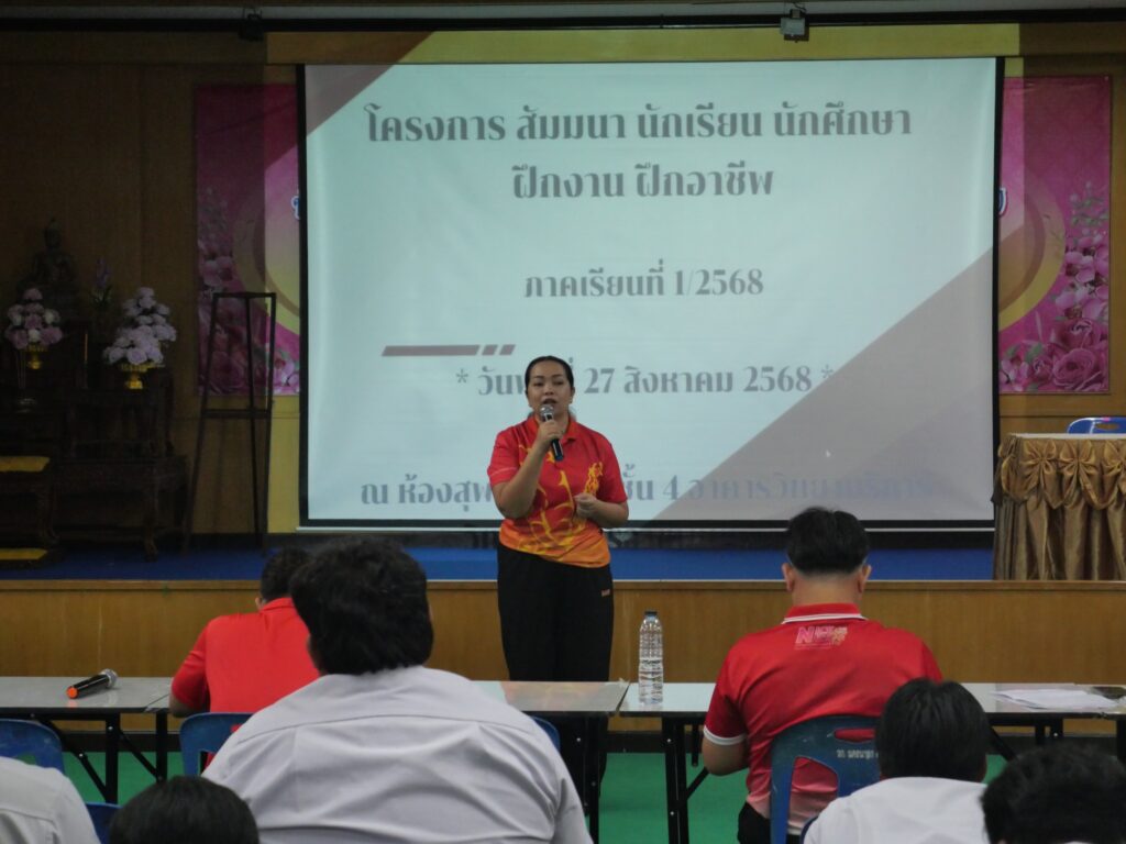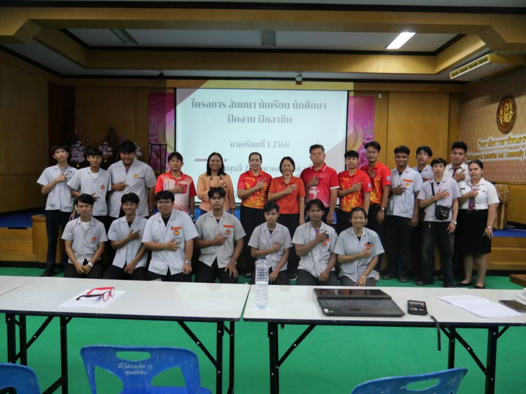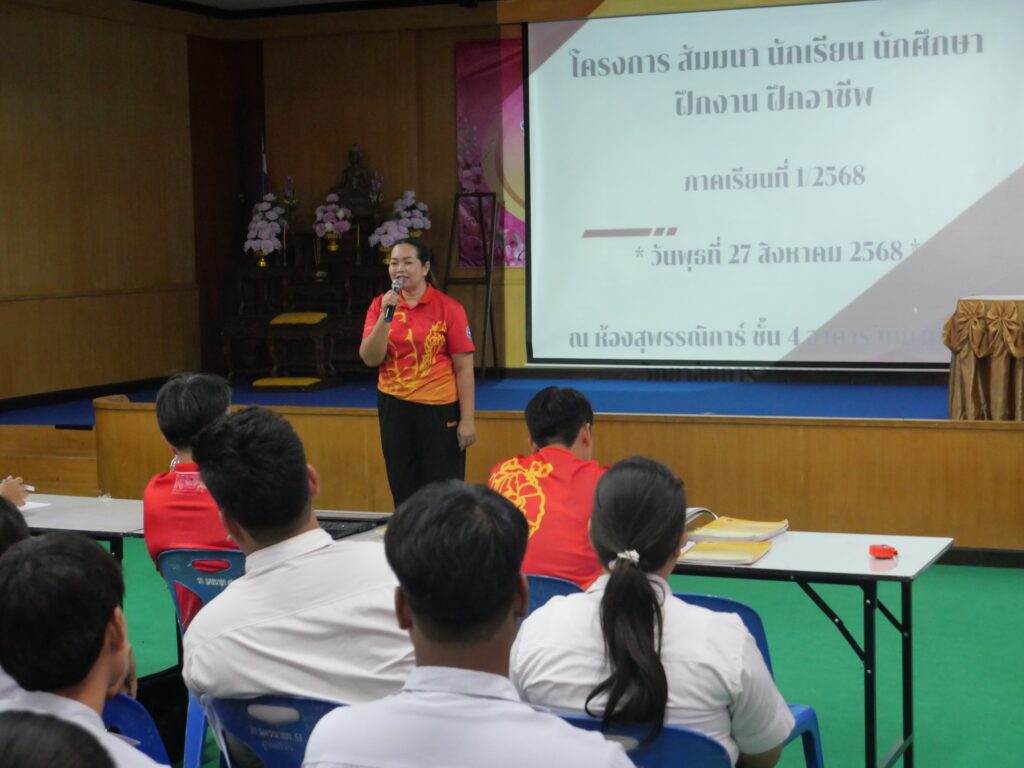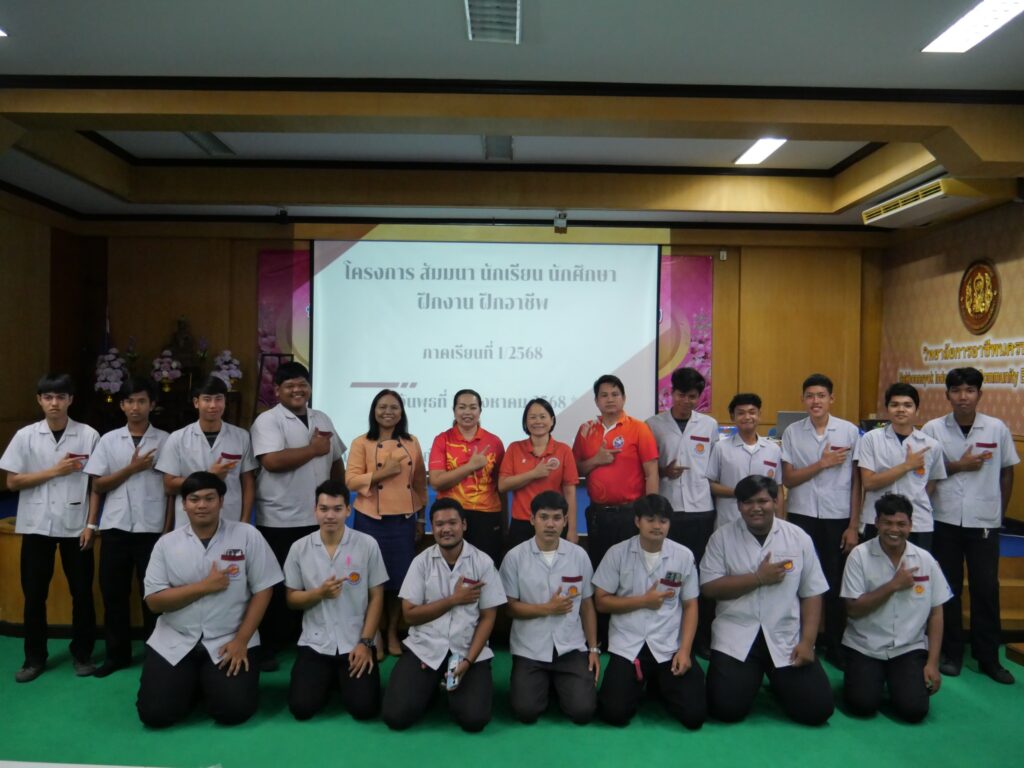 วันที่ 27 สิงหาคม 2568 นางศรัญญา สุขปลั่ง ผู้อำนวยการวิทยาลัยการอาชีพนครนายก พร้อมด้วย คณะผู้บริหาร คณะครู และนักศึกษา แผนกวิชาช่างยนต์ และแผนกวิชาช่างยนต์ วิทยาลัยการอาชีพนครนายก เข้าร่วมโครงการสัมมนา/ปัจฉิมนิเทศ นักเรียน นักศึกษา ฝึกประการณ์สมรรถนะวิชาชีพ ฝึกอาชีพ ประจำภาคเรียนที่ 1 ปีการศึกษา 2568 โดยงานอาชีวศึกษาระบบทวิภาคี ณ ห้องประชุมสุพรรณิการ์ ชั้น 4 อาคารวิทยบริการ วิทยาลัยการอาชีพนครนายก