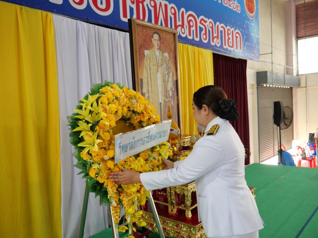 วันที่ 7 ตุลาคม 2568 นางศรัญญา สุขปลั่ง ผู้อำนวยการวิทยาลัยการอาชีพนครนายก พร้อมด้วย ผู้บริหาร คณะครู บุคลากรทางการศึกษา วิทยาลัยการอาชีพนครนายก เข้าร่วมกิจกรรมวันนวมินทรมหาราช วันคล้ายวันสวรรคต พระบาทสมเด็จพระบรมชนกาธิเบศร มหาภูมิพลอดุลยเดชมหาราช บรมนาถบพิตร 13 ตุลาคม 2568 ณ อาคารกีฬาอเนกประสงค์ วิทยาลัยการอาชีพนครนายก