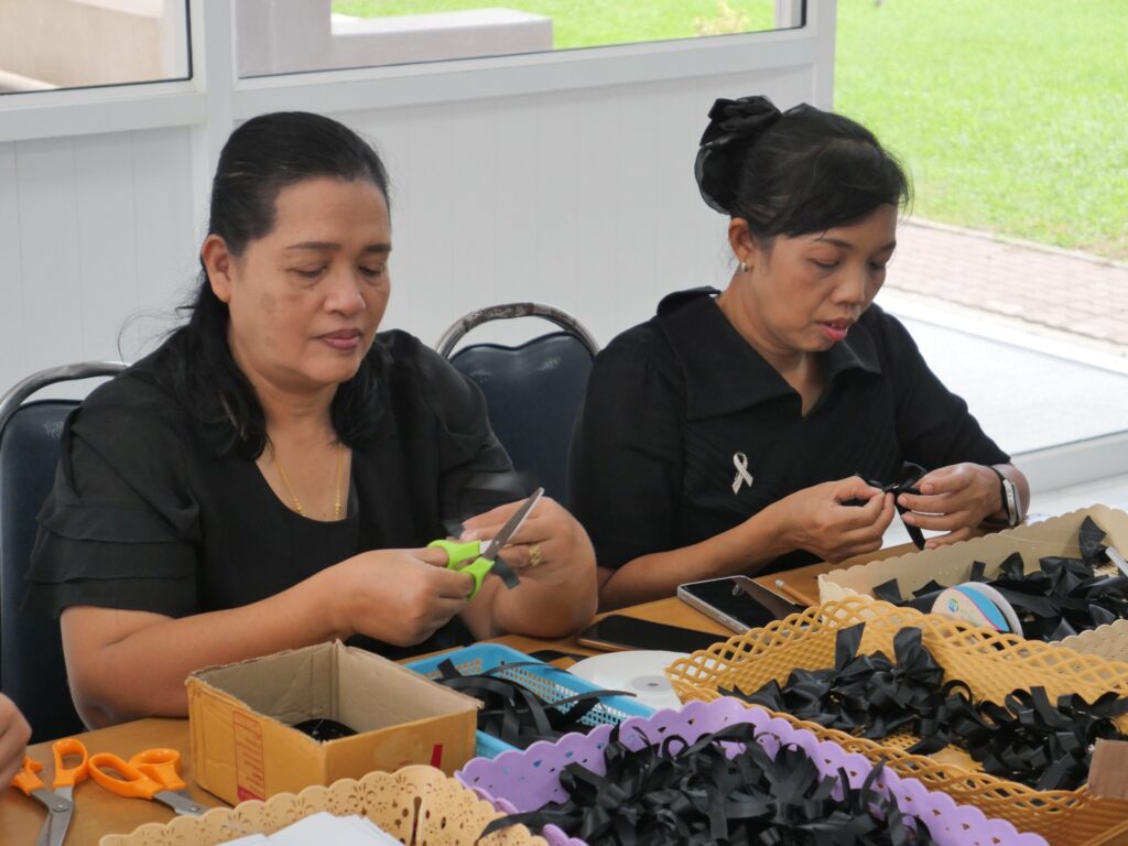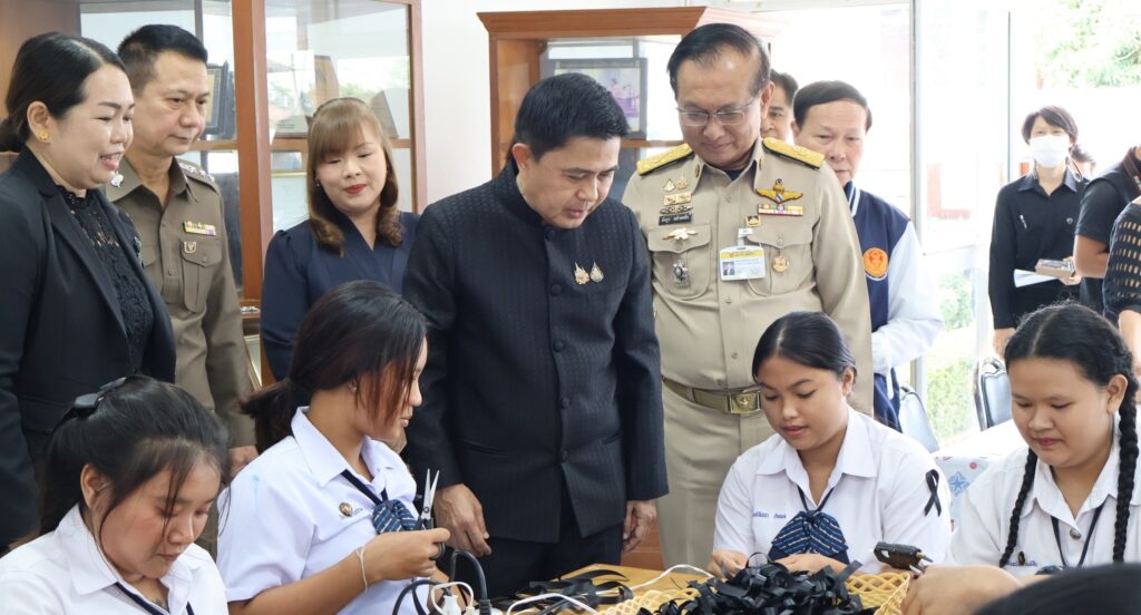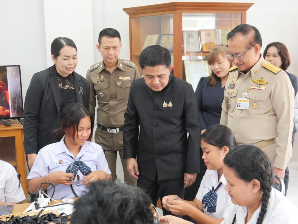 วันที่ 29 ตุลาคม 2568 วิทยาลัยการอาชีพนครนายก นำโดย นางศรัญญา สุขปลั่ง ผู้อำนวยการวิทยาลัยการอาชีพนครนายก พร้อมด้วย คณะครู บุคลากรทางการศึกษา วิทยาลัยการอาชีพนครนายก ดำเนินการจัดอบรมหลักสูตรริบบิ้นสีดำและจัดตั้งศูนย์จิตอาสาจัดทำริบบิ้น ถวายความอาลัย สมเด็จพระนางเจ้าสิริกิติ์ พระบรมราชินีนาถ พระบรมราชชนนีพันปีหลวง โดยมีนายชานน วาสิกศิริ ผู้ว่าราชการจังหวัดนครนายก และพลตำรวจตรี อังกูร คล้ายคลึง สมาชิกวุฒิสภา พร้อมด้วยหัวหน้าส่วนราชการ เข้าเยี่ยมการจัดตั้งศูนย์จิตอาสาจัดทำริบบิ้น ณ วิทยาลัยการอาชีพนครนายก