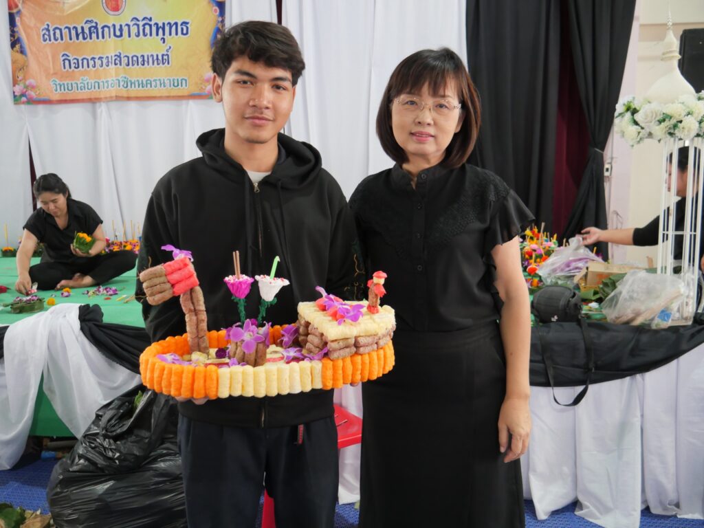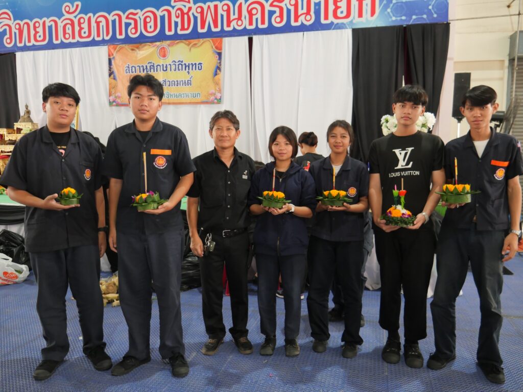 วันที่ 5 พฤศจิกายน 2568 นางรติภัทร จันทร์ส่อง รองผู้อำนวยการฝ่ายบริหารทรัพยากร วิทยาลัยการอาชีพนครนายก พร้อมด้วย คณะครู บุคลากรทางการศึกษา และนักเรียน นักศึกษา วิทยาลัยการอาชีพนครนายก เข้าร่วมกิจกรรมส่งเสริมประเพณีลอยกระทง ประจำปี 2568 ในระหว่างวันที่ 4 – 5 พฤศจิกายน 2568 ณ อาคารกีฬาอเนกประสงค์ วิทยาลัยการอาชีพนครนายก