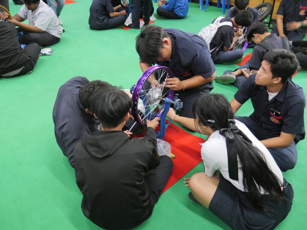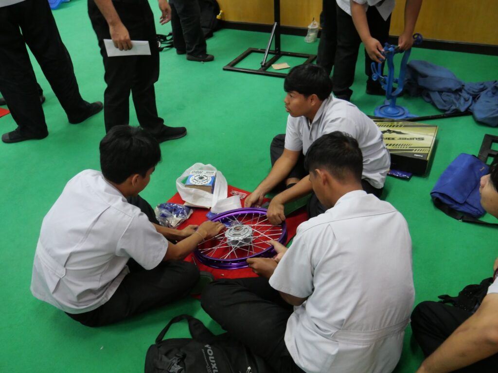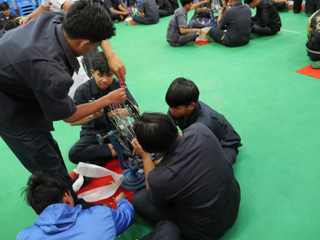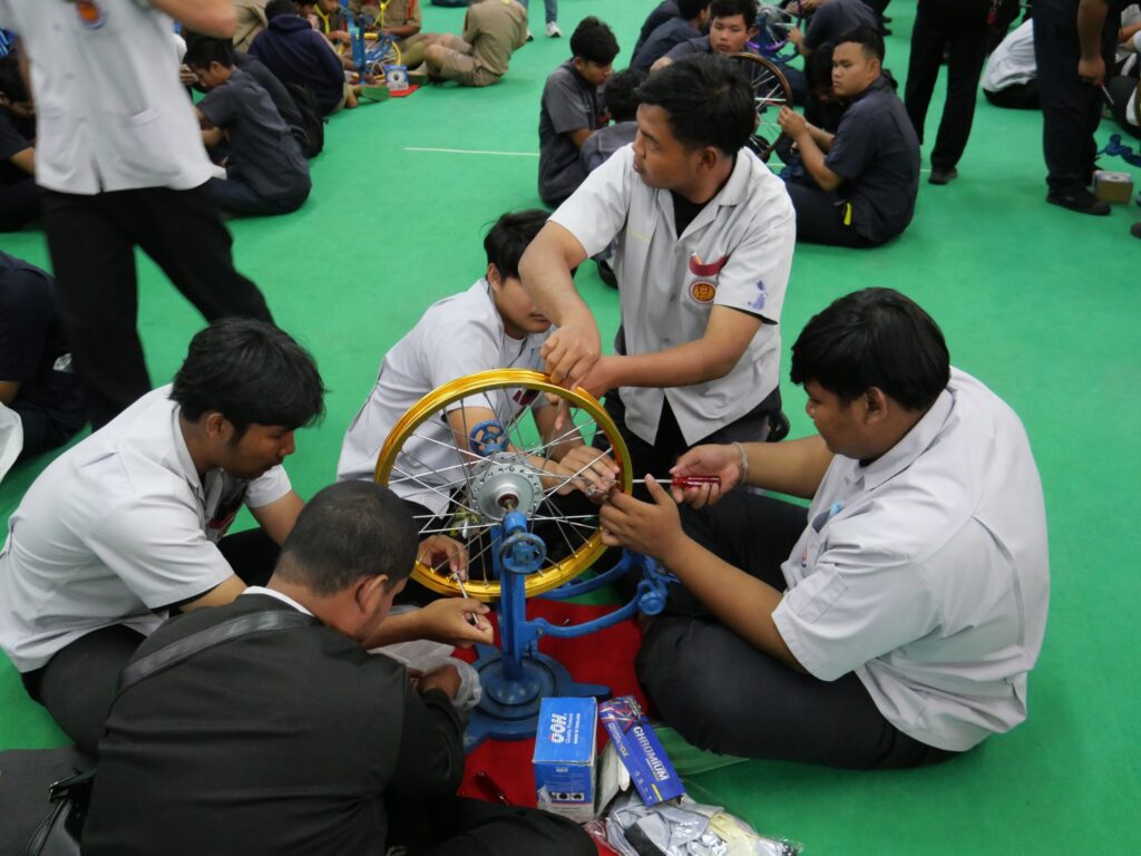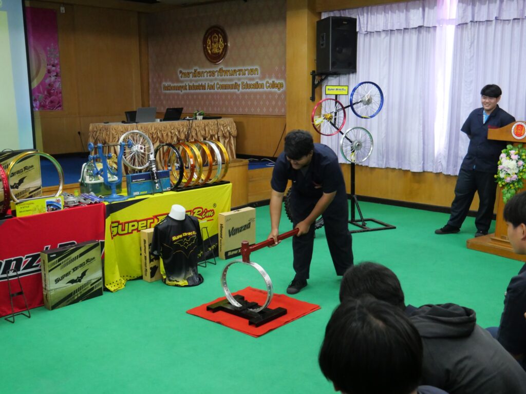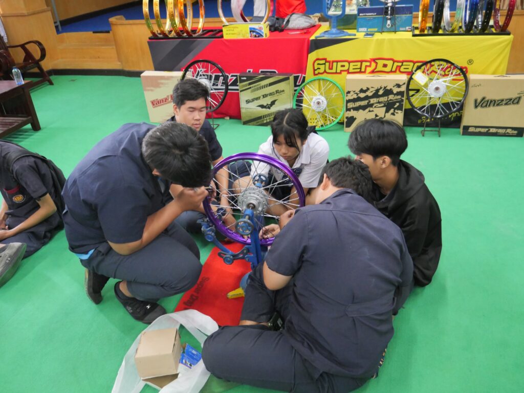 วันที่ 14 พฤศจิกายน 2568 นางศรัญญา สุขปลั่ง ผู้อำนวยการวิทยาลัยการอาชีพนครนายก พร้อมด้วย คณะผู้บริหาร คณะครู แผนกวิชาช่างยนต์ และนักเรียน นักศึกษา แผนกวิชาช่างยนต์ วิทยาลัยการอาชีพนครนายก เข้าร่วมการอบรมหลักสูตรการตั้งวงล้อรถจักรยานยนต์เพื่อการขับขี่ปลอดภัย ภายใต้โครงการเสริมความรู้ด้วยผู้เชี่ยวชาญภูมิปัญญาท้องถิ่น ณ ห้องประชุมสุพรรณิการ์ ชั้น 4 อาคารวิทยบริการ วิทยาลัยการอาชีพนครนายก