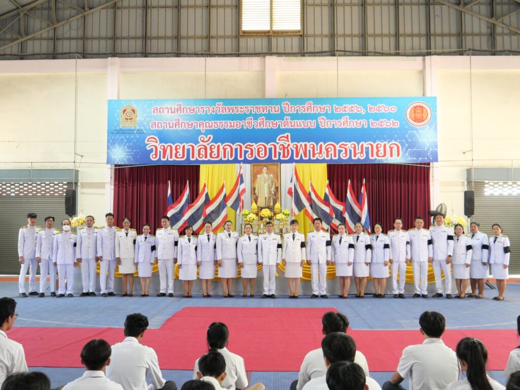 วันที่ 4 ธันวาคม 2568 ว่าที่ร้อยตรีเกษตร อ๊อกเวชะ ครูชำนาญการพิเศษ ทำหน้าที่รองผู้อำนวยการฝ่ายพัฒนากิจการนักเรียน นักศึกษา พร้อมด้วย ผู้บริหาร คณะครู บุคลากรทางการศึกษา และนักเรียน นักศึกษา วิทยาลัยการอาชีพนครนายก เข้าร่วมกิจกรรมวันคล้ายวันพระราชสมภพ พระบาทสมเด็จพระบรมชนกาธิเบศร มหาภูมิพลอดุลยเดช มหาราชบรมนาถบพิตร วันชาติ และวันพ่อแห่งชาติ ประจำปี 2568 ณ อาคารกีฬาอเนกประสงค์ วิทยาลัยการอาชีพนครนายก