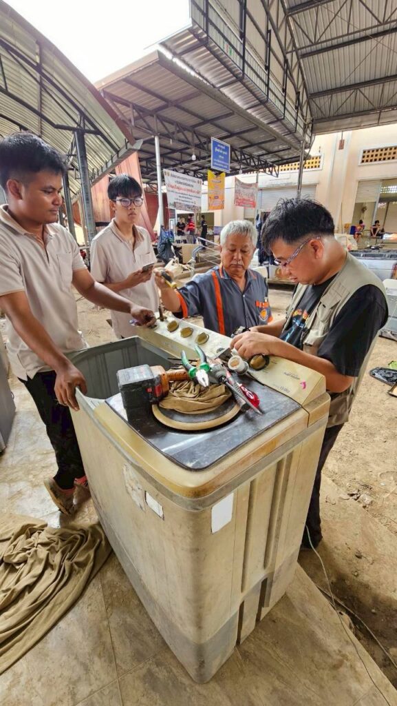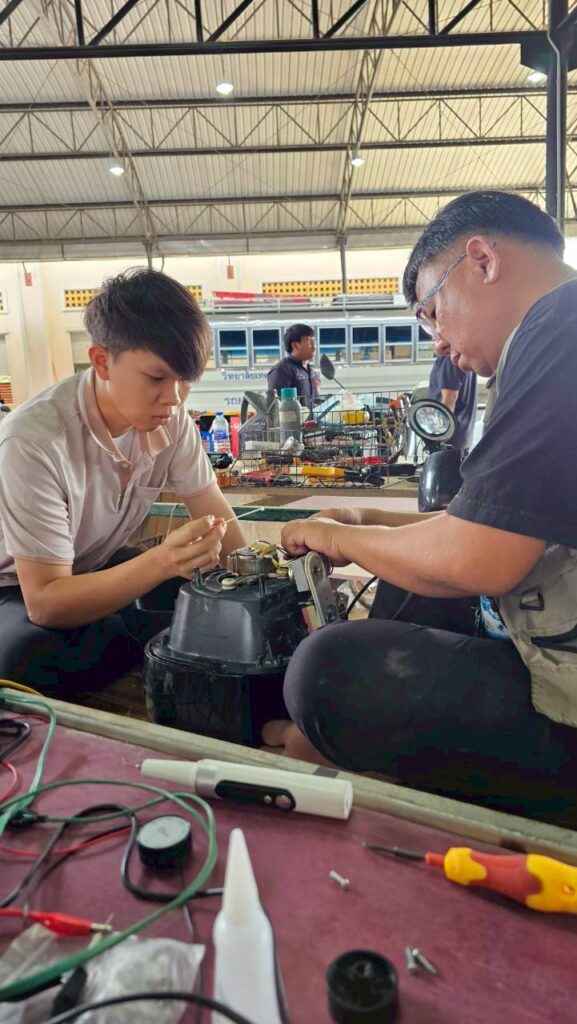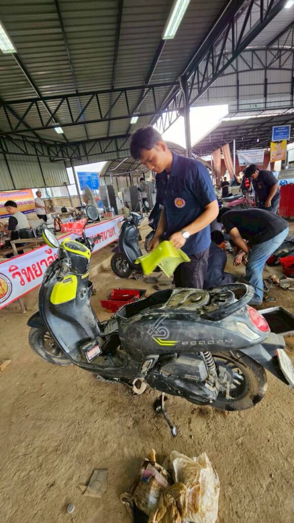 วันที่ 5 ธันวาคม 2568 นางศรัญญา สุขปลั่ง ผู้อำนวยการวิทยาลัยการอาชีพนครนายก พร้อมด้วย นางรติภัทร จันทร์ส่อง รองผู้อำนวยการฝ่ายบริหารทรัพยากร คณะครู และนักเรียน นักศึกษา แผนกวิชาช่างยนต์ แผนกวิชาช่างไฟฟ้า แผนกวิชาช่างอิเล็กทรอนิกส์ วิทยาลัยการอาชีพนครนายก ร่วมลงพื้นที่ร่วมด้วยช่วยบริการ อำเภอหาดใหญ่ จังหวัดสงขลา เพื่อช่วยเหลือประชาชนที่ได้รับผลกระทบจากอุทกภัย ผ่านกิจกรรมศูนย์ซ่อมสร้างเพื่อชุมชน (Fix It Center) ร่วมซ่อมแซมอุปกรณ์เครื่องใช้ไฟฟ้าต่าง ๆ รถยนต์ รถจักรยานยนต์ ณ ให้จุดบริการศาลาทวดบ้านคลองหวะ จังหวัดสงขลา