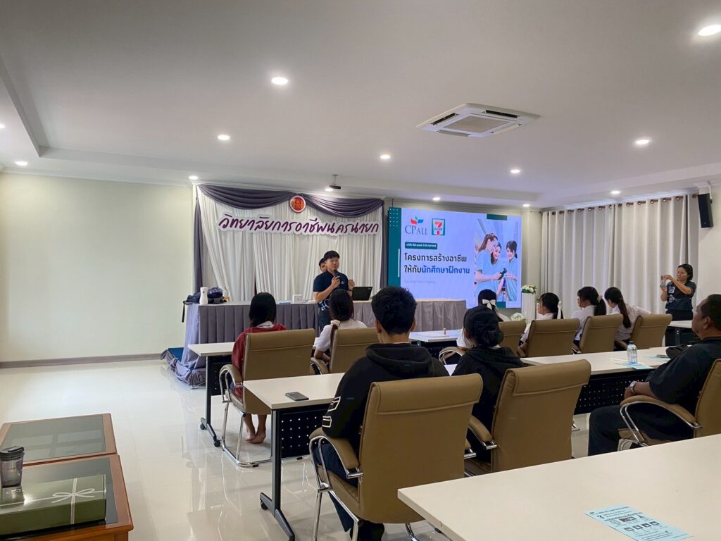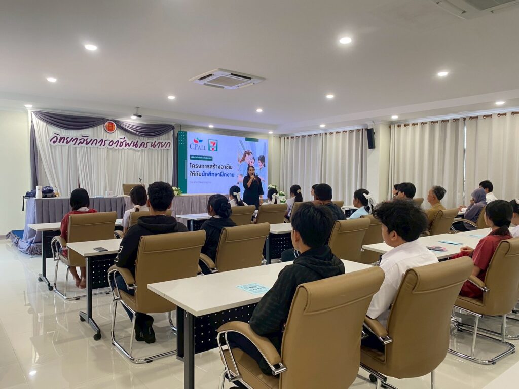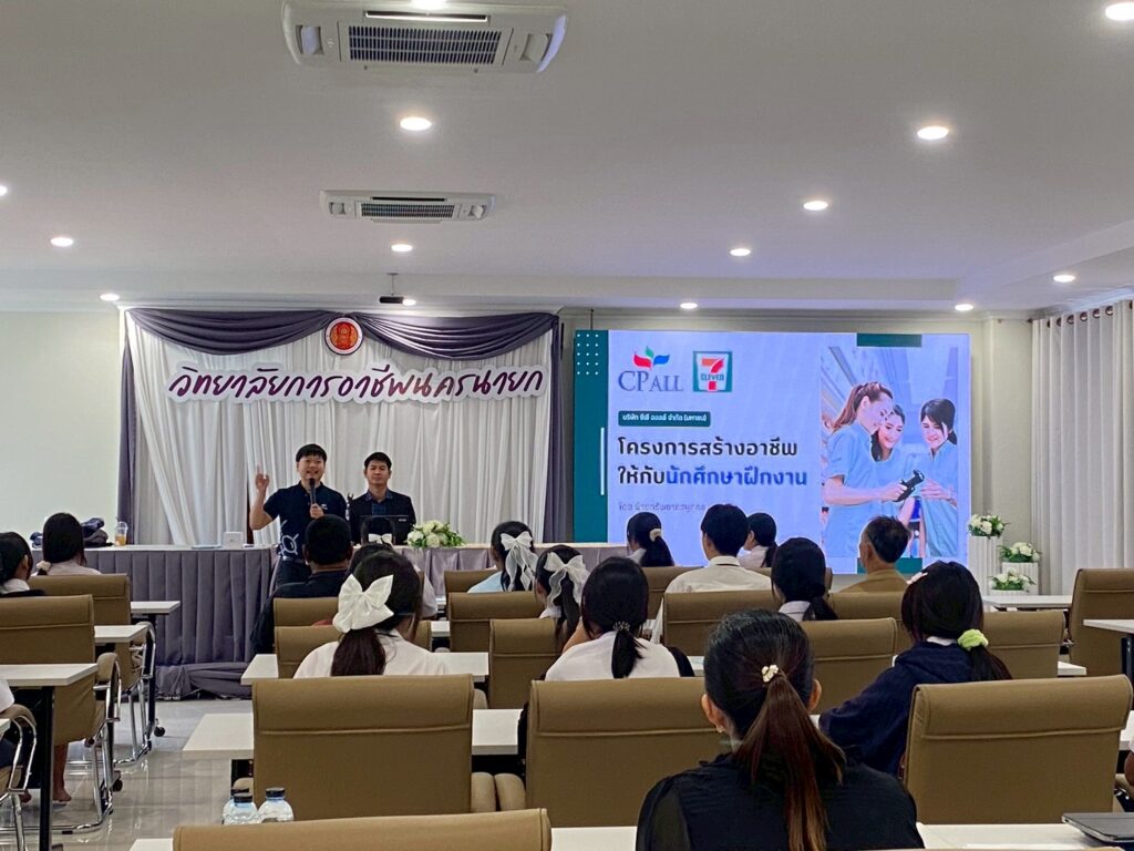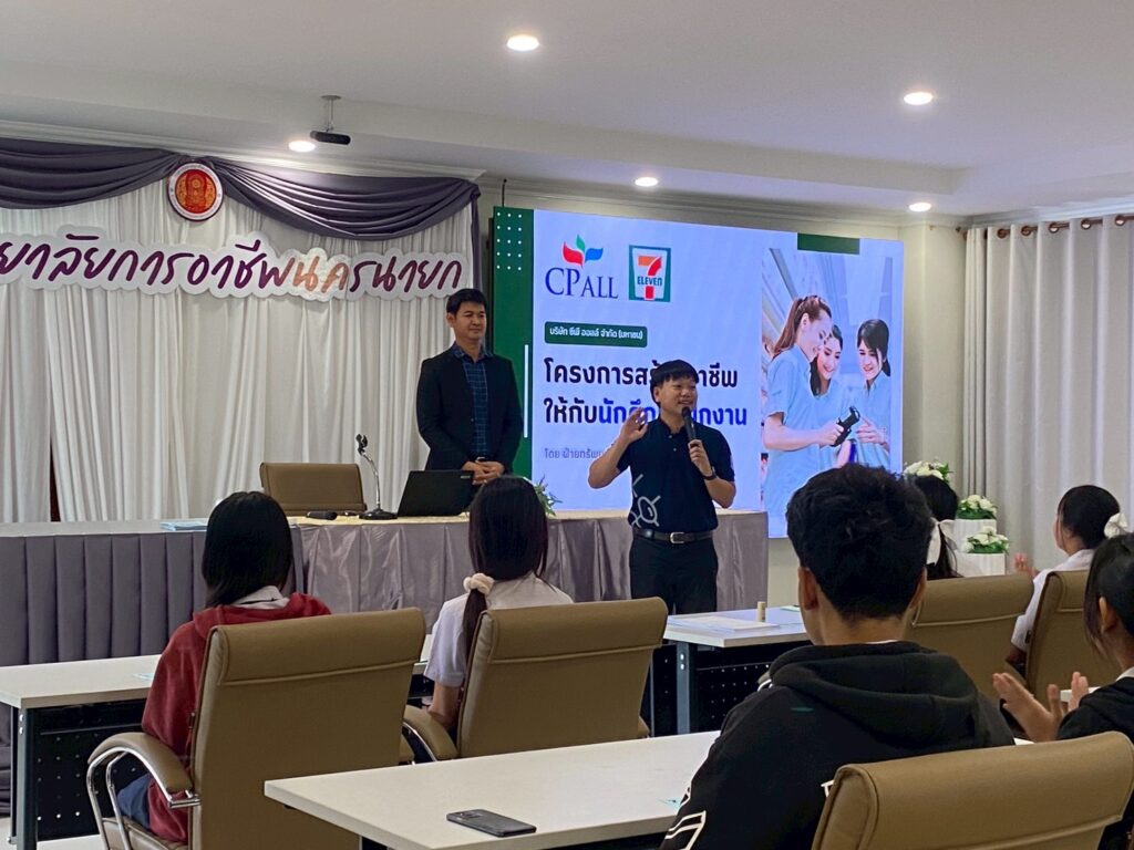 วันที่ 12 ธันวาคม 2568 นางศรัญญา สุขปลั่ง ผู้อำนวยการวิทยาลัยการอาชีพนครนายก พร้อมด้วย นางภัคจิรา จิตรมิตร ครูชำนาญการพิเศษ ทำหน้าที่รองผู้อำนวยการฝ่ายวิชาการ นางพัชรินทร์ วิลัยโรจน์ หัวหน้างานอาชีวศึกษาระบบทวิภาคี คณะครู และนักเรียน นักศึกษา แผนกวิชาเทคโนโลยีธุรกิจดิจิทัล เข้ารับฟังการประชาสัมพันธ์โครงการนักศึกษาฝึกงาน โดยบริษัท ซีพี ออลล์ จำกัด (มหาชน) ณ ห้องประชุมปาริชาติ ชั้น 2 อาคารปาริชาติ วิทยาลัยการอาชีพนครนายก