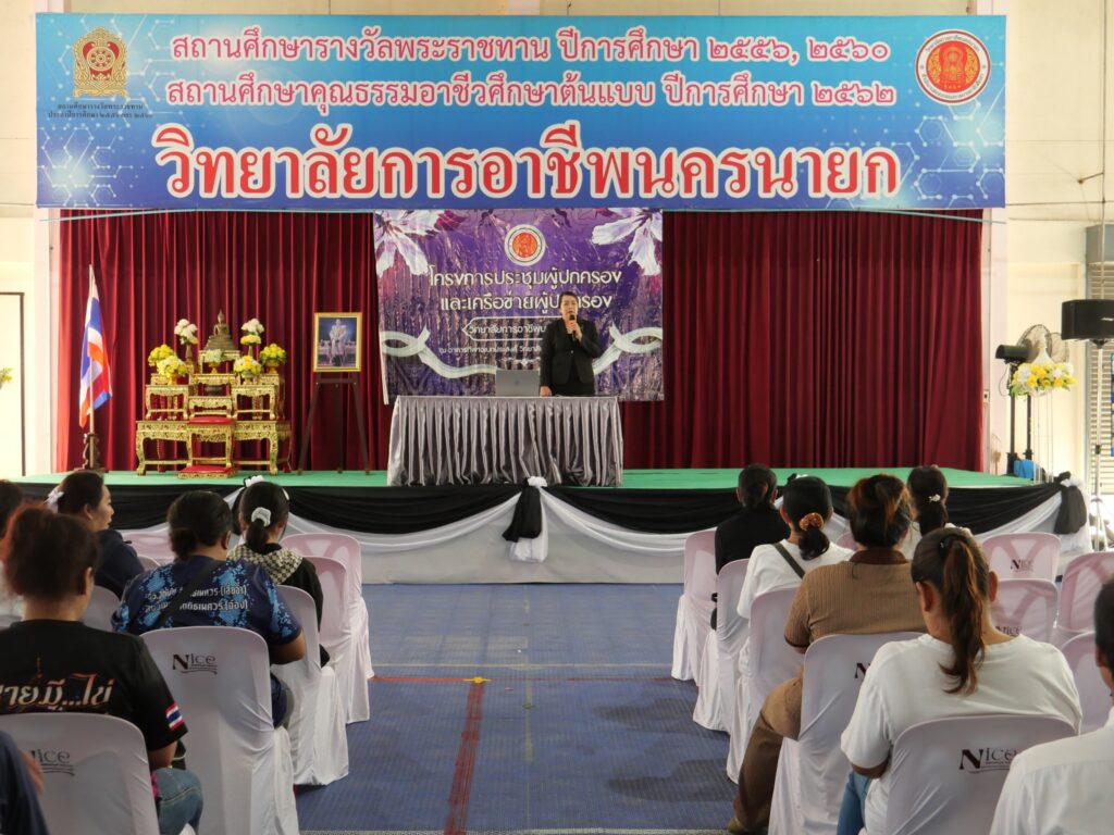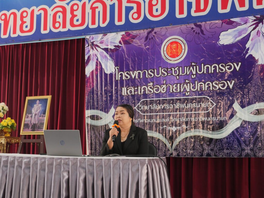 วันที่ 14 ธันวาคม 2568 นางศรัญญา สุขปลั่ง ผู้อำนวยการวิทยาลัยการอาชีพนครนายก พร้อมด้วย ผู้บริหาร คณะครู และบุคลากรทางการศึกษา วิทยาลัยการอาชีพนครนายก เข้าร่วมโครงการประชุมผู้ปกครองและเครือข่ายผู้ปกครอง (การประชุมผู้ปกครอง) ภาคเรียนที่ 2 ประจำปีการศึกษา 2568 ณ อาคารกีฬาอเนกประสงค์ วิทยาลัยการอาชีพนครนายก