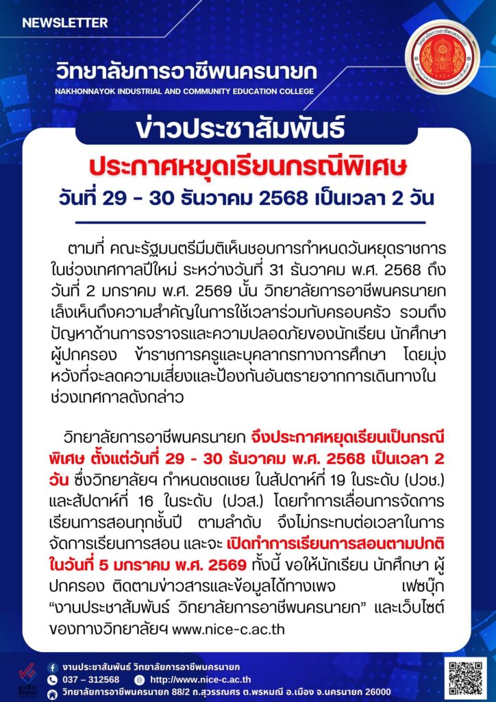 วันที่ 29 – 30 ธันวาคม 2568 เป็นเวลา 2 วัน