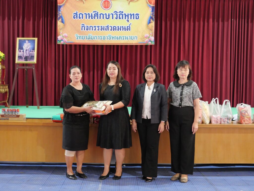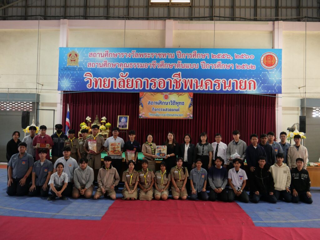 วันที่ 19 ธันวาคม 2568 นางศรัญญา สุขปลั่ง ผู้อำนวยการวิทยาลัยการอาชีพนครนายก พร้อมด้วย ผู้บริหาร คณะครู บุคลากรทางการศึกษา และนักเรียน นักศึกษา วิทยาลัยการอาชีพนครนายก ร่วมบริจาคสิ่งของเพื่อช่วยเหลือผู้ประสบภัยชายแดนไทยกัมพูชา และส่งกำลังใจให้พี่น้องผู้ประสบภัยแนวชายแดน ณ อาคารกีฬาอเนกประสงค์ วิทยาลัยการอาชีพนครนายก
