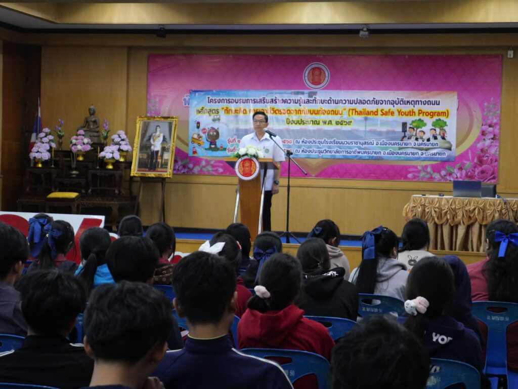 วันที่ 19 ธันวาคม 2568 นางศรัญญา สุขปลั่ง ผู้อำนวยการวิทยาลัยการอาชีพนครนายก พร้อมด้วย ผู้บริหาร คณะครู บุคลากรทางการศึกษา และนักเรียน นักศึกษา วิทยาลัยการอาชีพนครนายก ร่วมโครงการอบรมเสริมสร้างความรู้และทักษะด้านความปลอดภัยจากอุบัติเหตุทางถนน หลักสูตร “ทักษะคิด การเอาชีวิตรอดภัยบนท้องถนน” (Thailand Safe Youth Program) ปีงบประมาณ พ.ศ. 2569 โดยมีนายแพทย์สุวรรณ เพ็ชรรุ่ง นายแพทย์สาธารณสุขจังหวัดนครนายก เป็นประธานในพิธีเปิด ณ ห้องประชุมสุพรรณิการ์ ชั้น 4 อาคารวิทยบริการ วิทยาลัยการอาชีพนครนายก