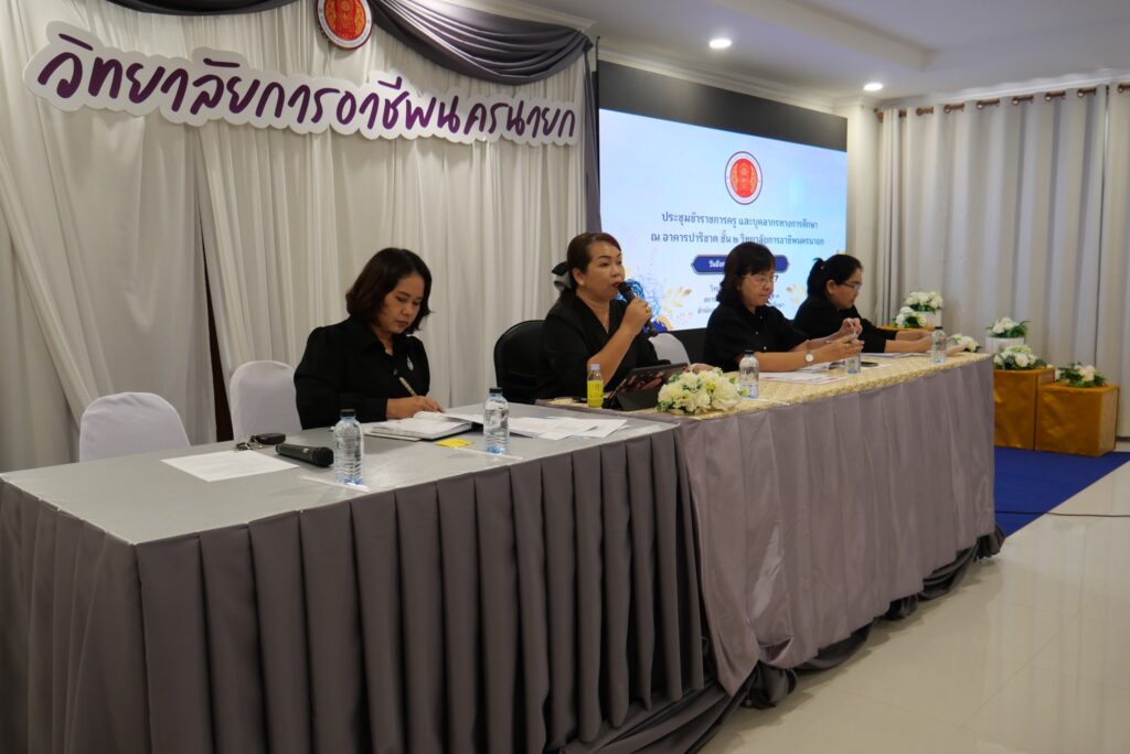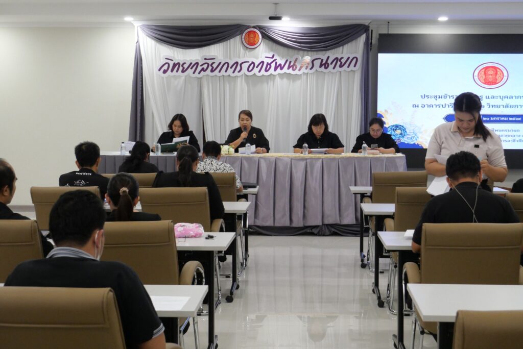 วันที่ 20 มกราคม 2569 นางศรัญญา สุขปลั่ง ผู้อำนวยการวิทยาลัยการอาชีพนครนายก พร้อมด้วย ผู้บริหาร คณะครู และบุคลากรทางการศึกษา วิทยาลัยการอาชีพนครนายก เข้าร่วมการประชุมข้าราชการครู พนักงานราชการ และบุคลากรทางการศึกษา ครั้งที่ 1/2569 ในวันอังคารที่ 20 มกราคม 2569 ณ ห้องประชุมปาริชาติ ชั้น 2 อาคารปาริชาติ วิทยาลัยการอาชีพนครนายก